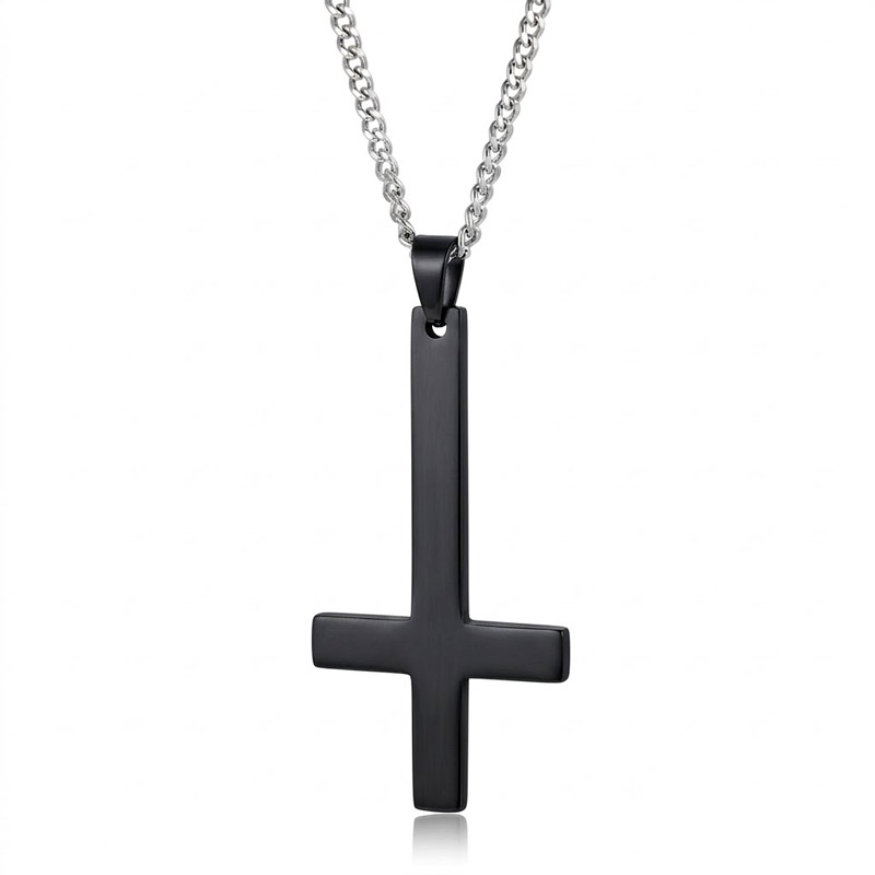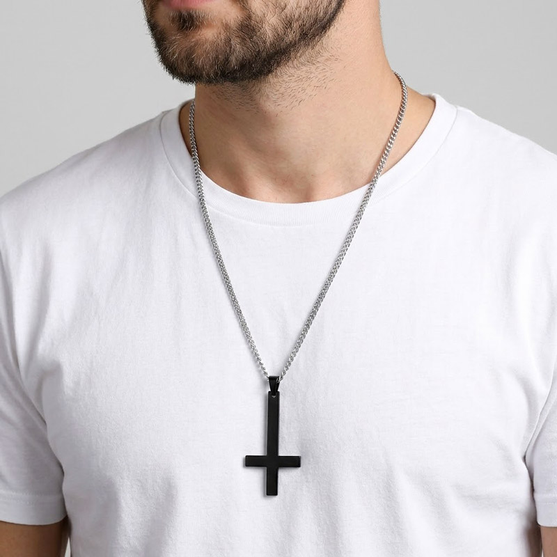 Black Upside Down Cross Necklace – Pyrrus