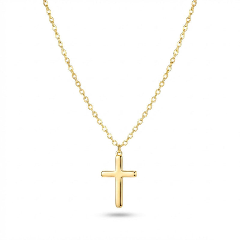 This is the gold cross we compare everything else to internally. The plating has a buttery richness you usually only find on solid gold pieces. At 0.91 inches, the pendant hits that sweet spot where it is visible without being loud. We have worn test samples for weeks straight with zero fading.