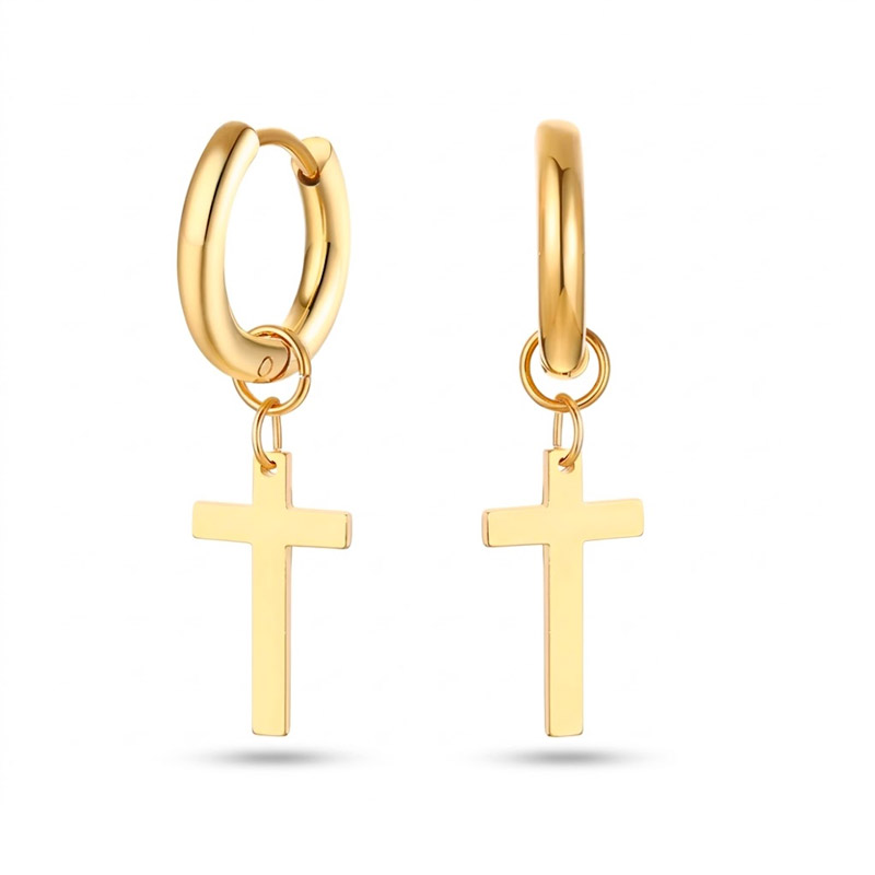 A stripped-back gold cross huggie built for men who wear their faith without ceremony.