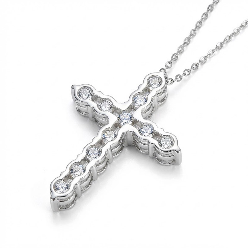 - Shared-prong setting allows maximum light return between each stone, giving the cross a continuous line of fire rather than isolated sparkle.