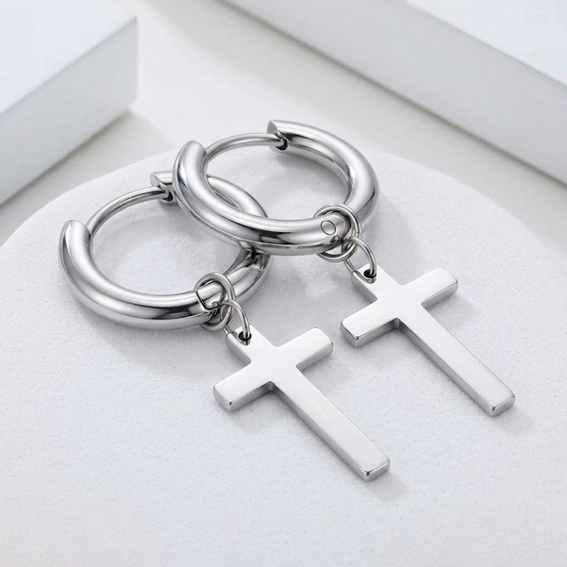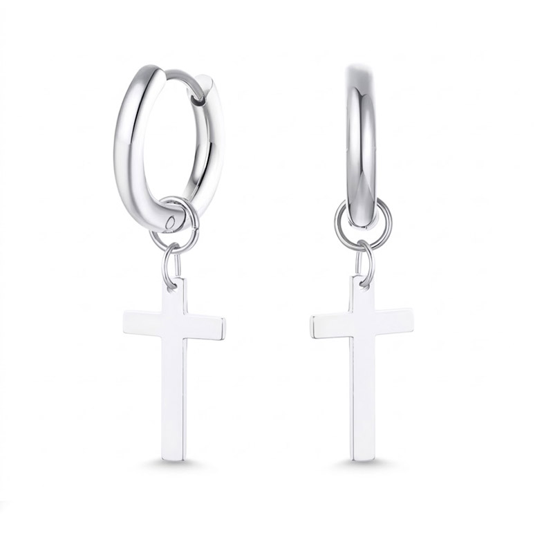 Men’s Stainless Steel Cross Earrings with Huggie Hoop